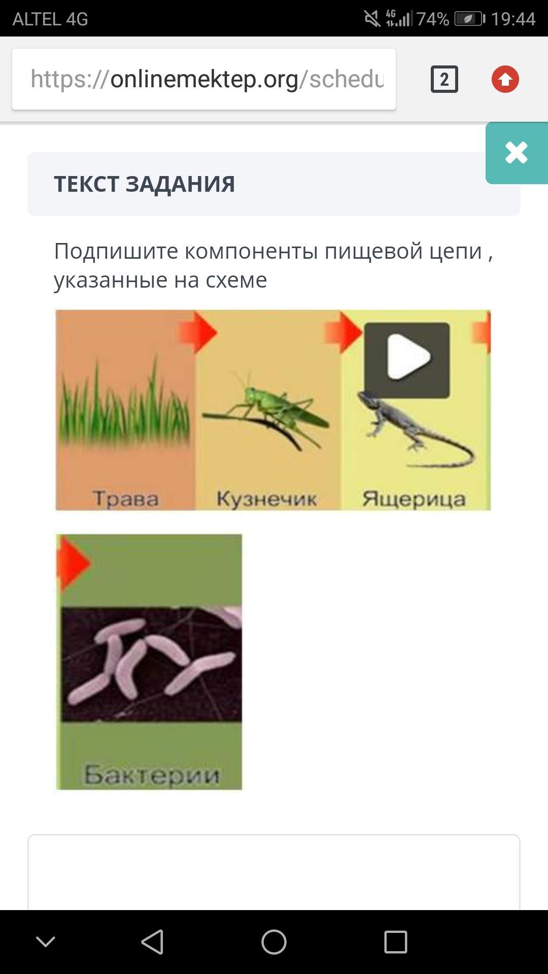 Подпишите компоненты пищевой цепи, указанные на схеме