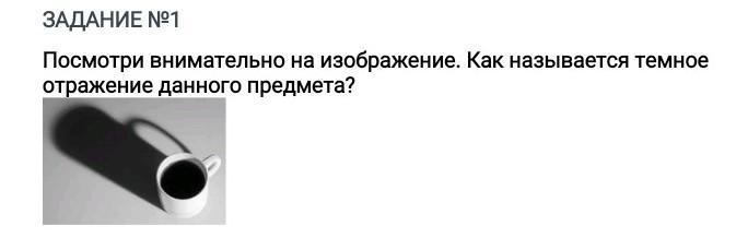 Посмотри внимательно на изображение. Как называется темное отражение данного предмета?