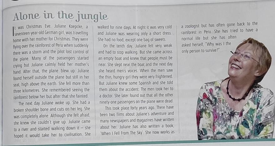 2) When Juliane woke up in the Jungle,she.....