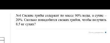 4,5 * 80%=4,5*0,8=3,6(кг) - масса сухого вещества в свежих и сухих грибах(не изменяется).