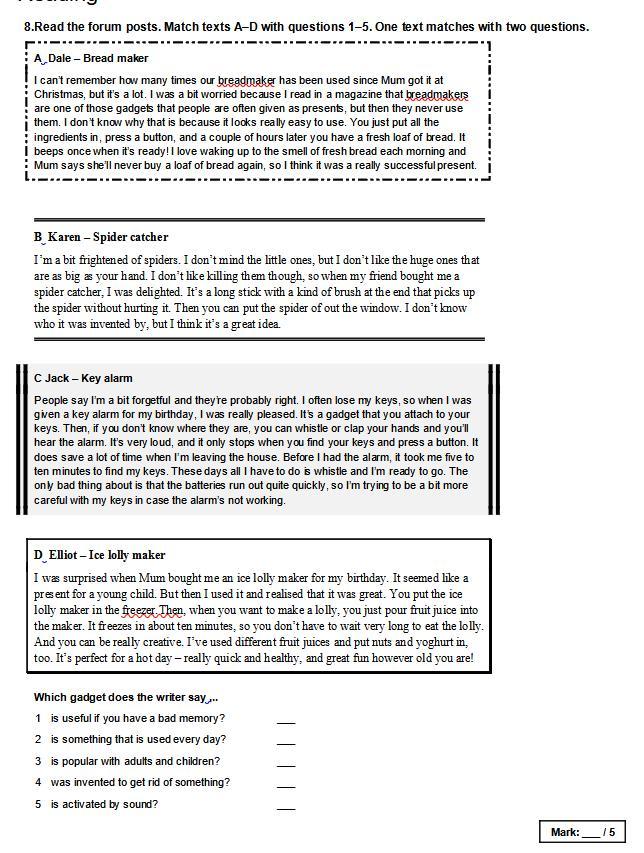 8.Read the forum posts. Match texts A–D with questions 1–5. One text matches with two questions.