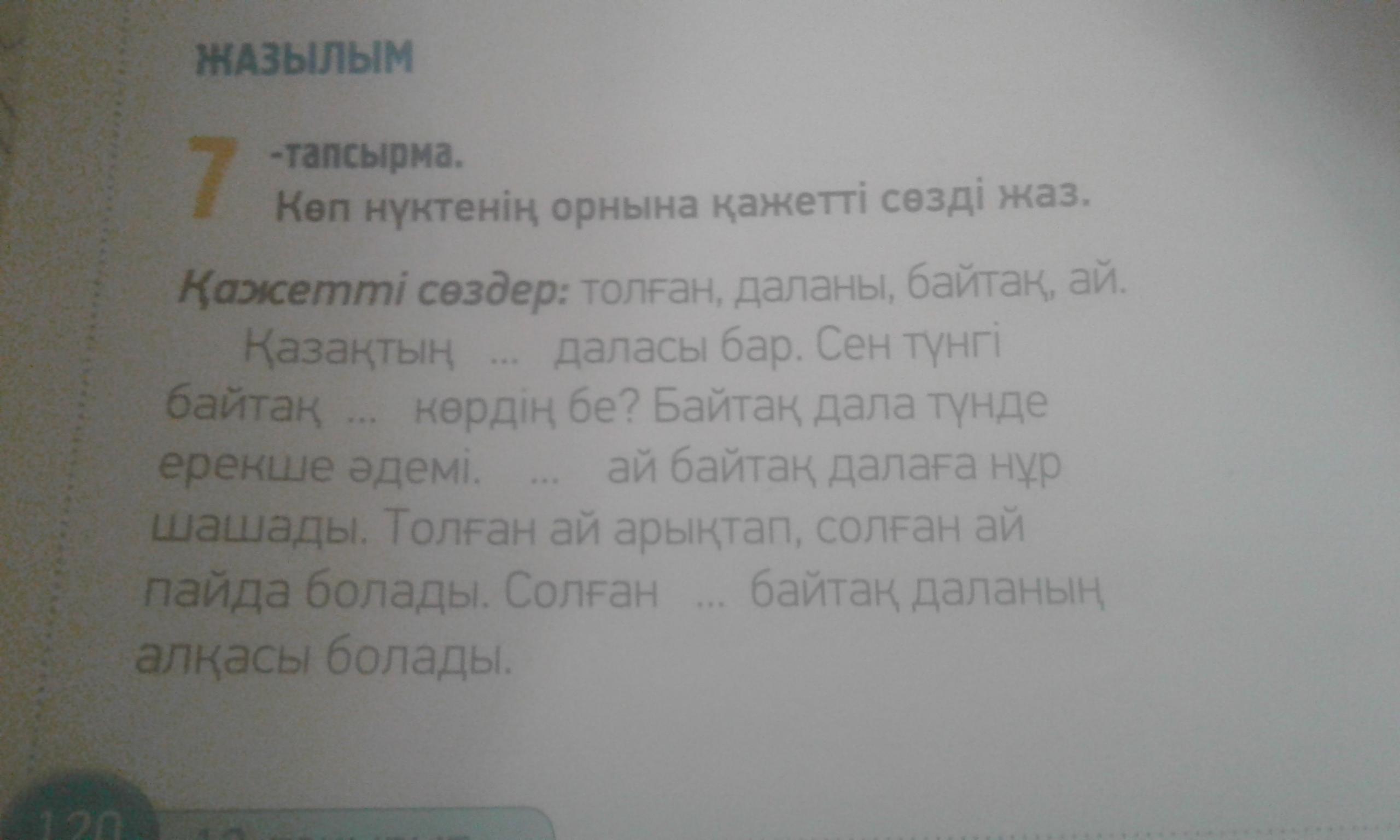 көп нүктенің орнына қажетті сөзді қойып жаз Көллің пайда тамсырма 7