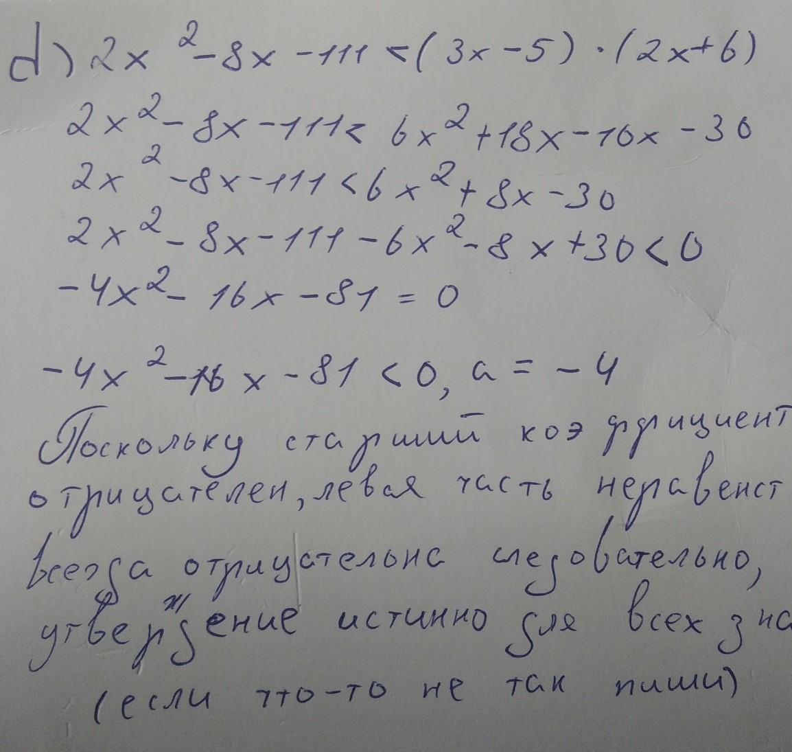 Поскольку старший коэффициент отрицателен,левая часть неравенства всегда отрицательна следовательно, утверждение истинно для всех значений