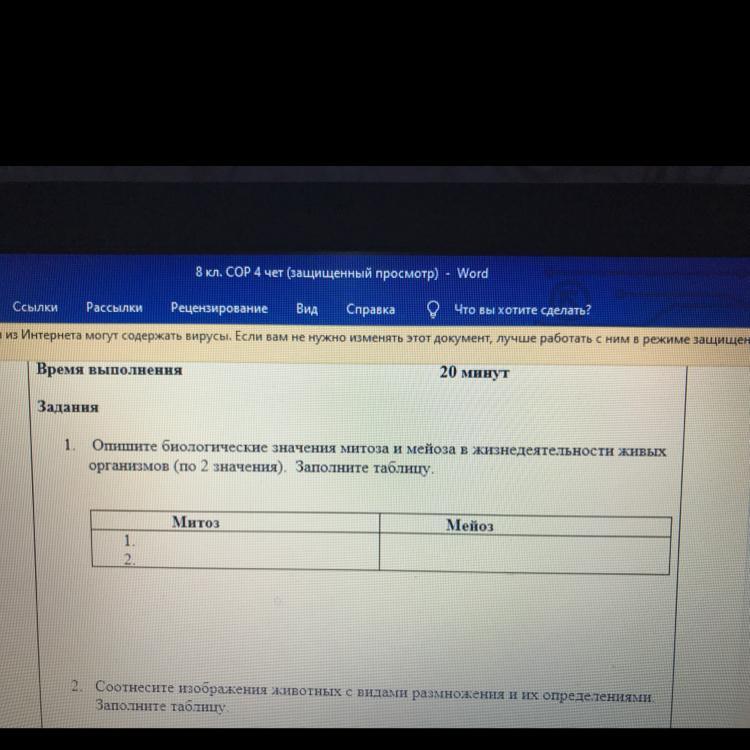 опишите биологические значения митоза и мейоза в жизнедеятельности живых организмов (по два значения ) заполните таблицу