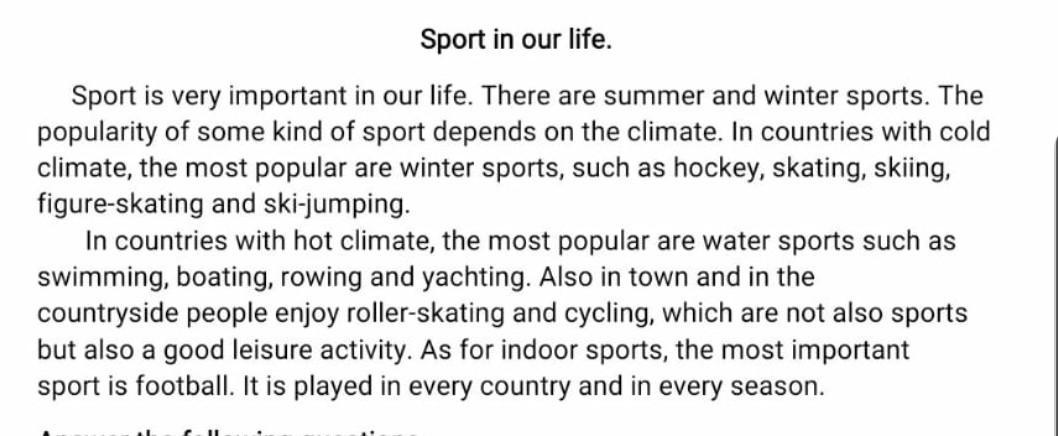 2. The most popular winter sports is hockey, skating, skiing, figure-skating and ski-jumping.