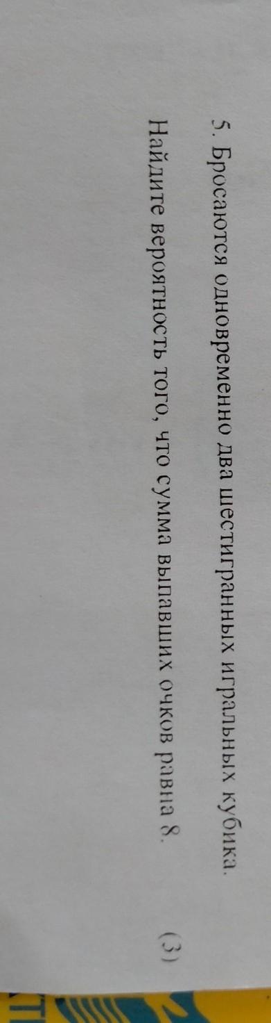 Количество все возможных событий: 6"6-36 Выпишем все варианты выпавших очков, в сумме которых дадут 8 (2;6], (3;5), (4;4), [5%;3], (6;2] - 5 вариантов (число благоприятных событий) Вероятность того, что сумма выпавших очков равна 8 Р(A) %3D 5/36 Событие В — "произведение выпавших очков равно 8" Таких вариантов можно привести подбором: (2;4), (4;2)- всего 2 варианта (число благоприятных событий) Искомая вероятность: Р(В) %3 2/36 %3D 1/18 Событие С — сумма выпавших очков больше, чем произведение (136], [1;5), (1;4), (1;3}, (1;2}, (1;1) - всего 6 и с учетом симметричности всего будет 5+6%11 вариантов Искомая вероятность: Р(C) - 11/36.