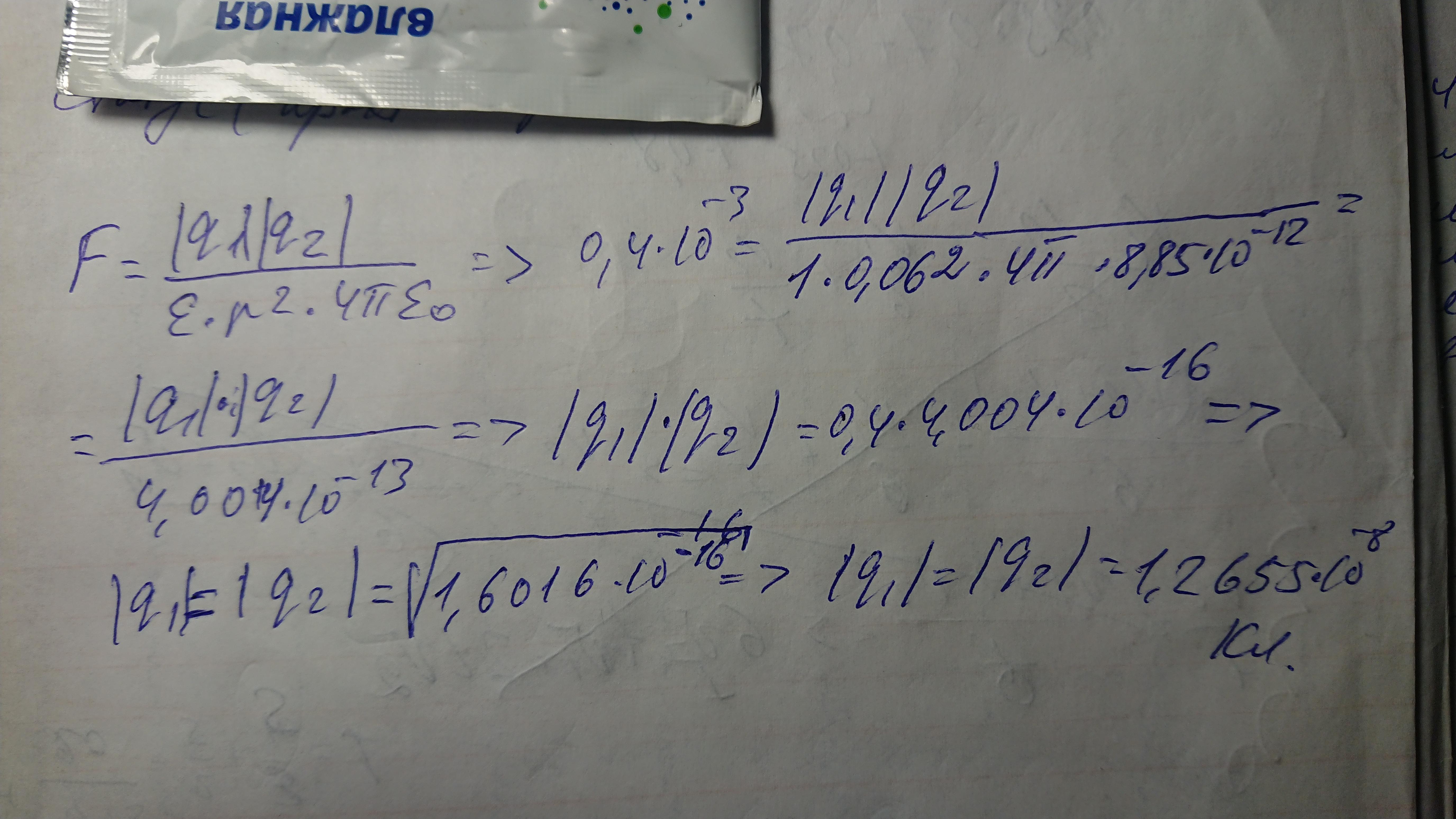 Ответ: Решаем по закону кулона, величина заряда 1,2655*10^-8 Кл. См фото.