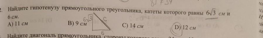 Решение: (a⊥b; a = 6√3 см; b = 6 см) – по теореме Пифагора: