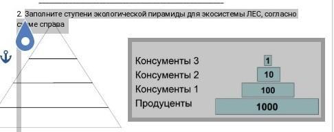 Заполните ступени экологической пирамиды для экосистемы ЛЕС, согласно схеме справа