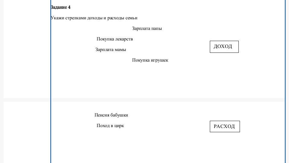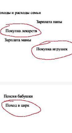 расходы : покупка лекарств, покупка игрушек, поход в цирк