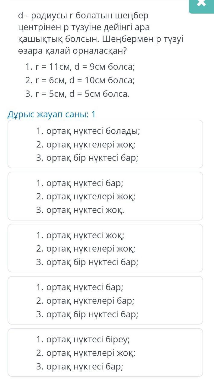 3)ортақ бір нүктесі бар