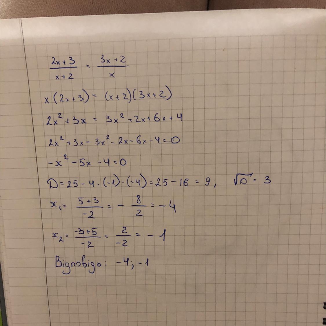 (2х + 3)х - (3х + 2)(х + 2) = 0