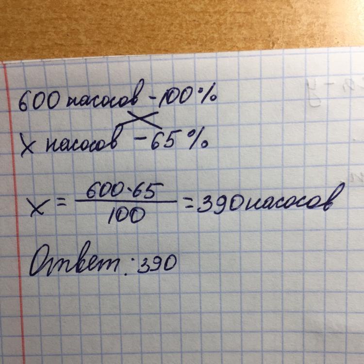 предприятие изготовило за квартал 600 насосов,из которых 65% имели высшую категорию качества. Сколько насосов высшей категории качества изготовило предприятие?