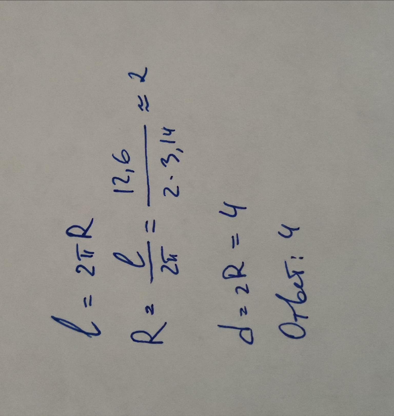 Если длина одной нити, намотанной на внешнюю сторону изделия, составляет 12,6 дм, то какова толщина (диаметр) изделия?