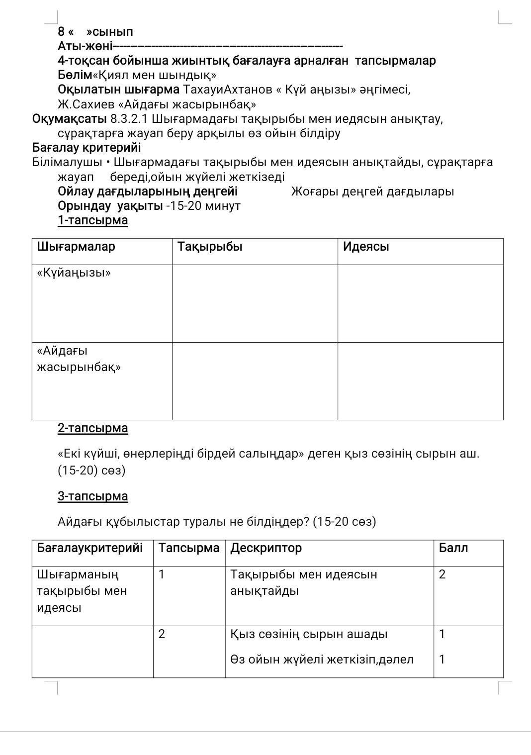 4-тоқсан бойынша жиынтық бағалауға арналған тапсырмалар
