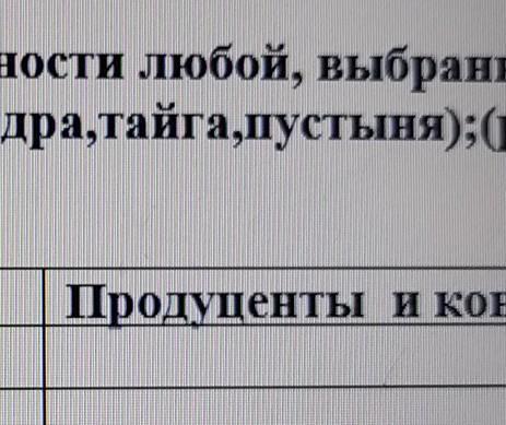 2. Сформулируйте характерные особенности любой, выбранной вами,экосистемы в виде таблицы: (тундра,тайга,пустыня);(река, озеро, болото) (4б)