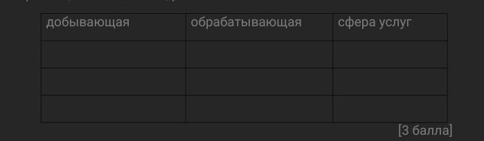 Распределите отрасли и заполните таблицу, используя предложенные варианты: