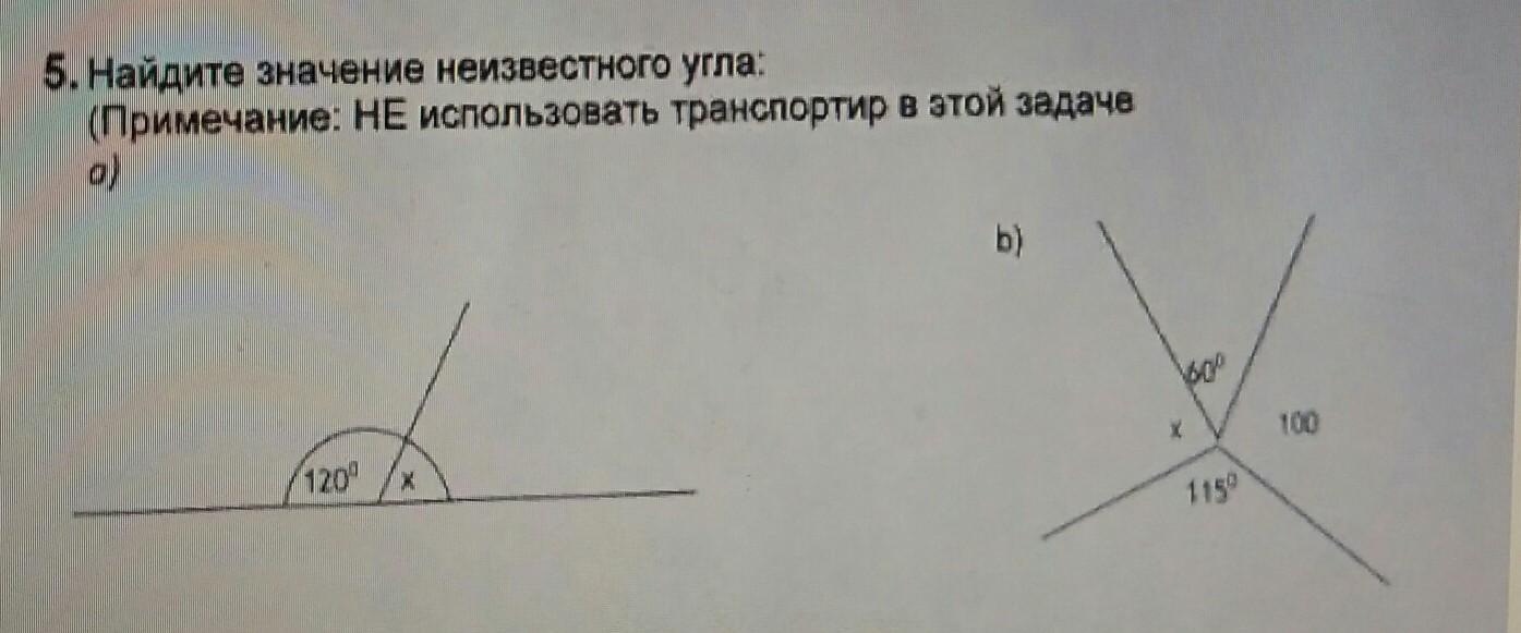 б) 360°-105°-100°-60°=85° на рисунке изображён угол 360° значит мы от 360°- известные угли