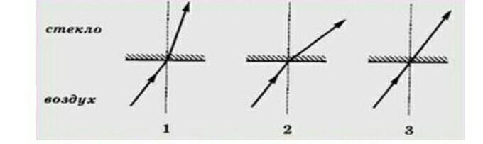 На рисунке показан световой луч, падающий из воздуха на поверхность стекла. Какое утверждение верно?
