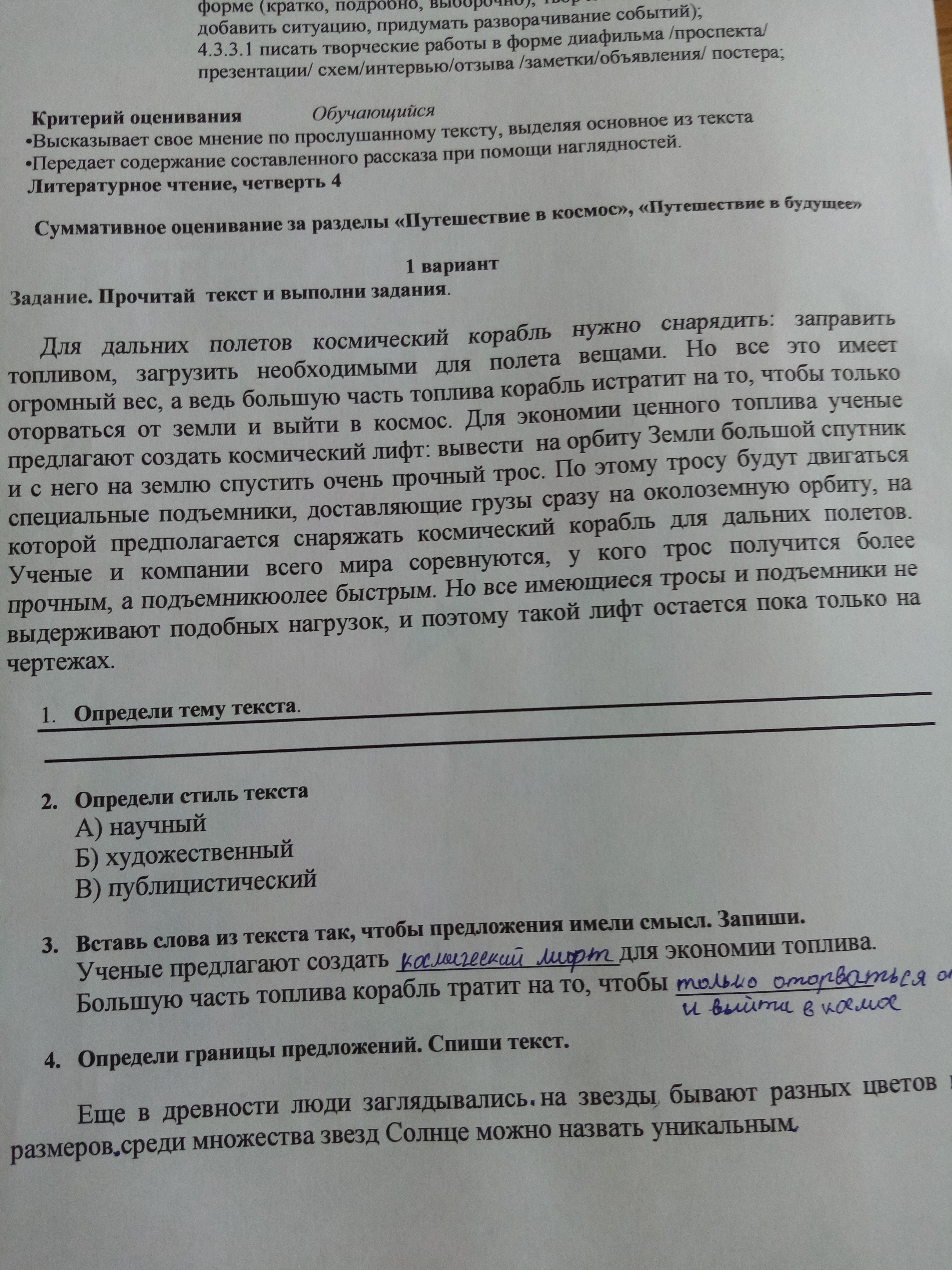 Соч по литературному чтению. 4 класс. 4 четверть. Тема: путешествия в космос.