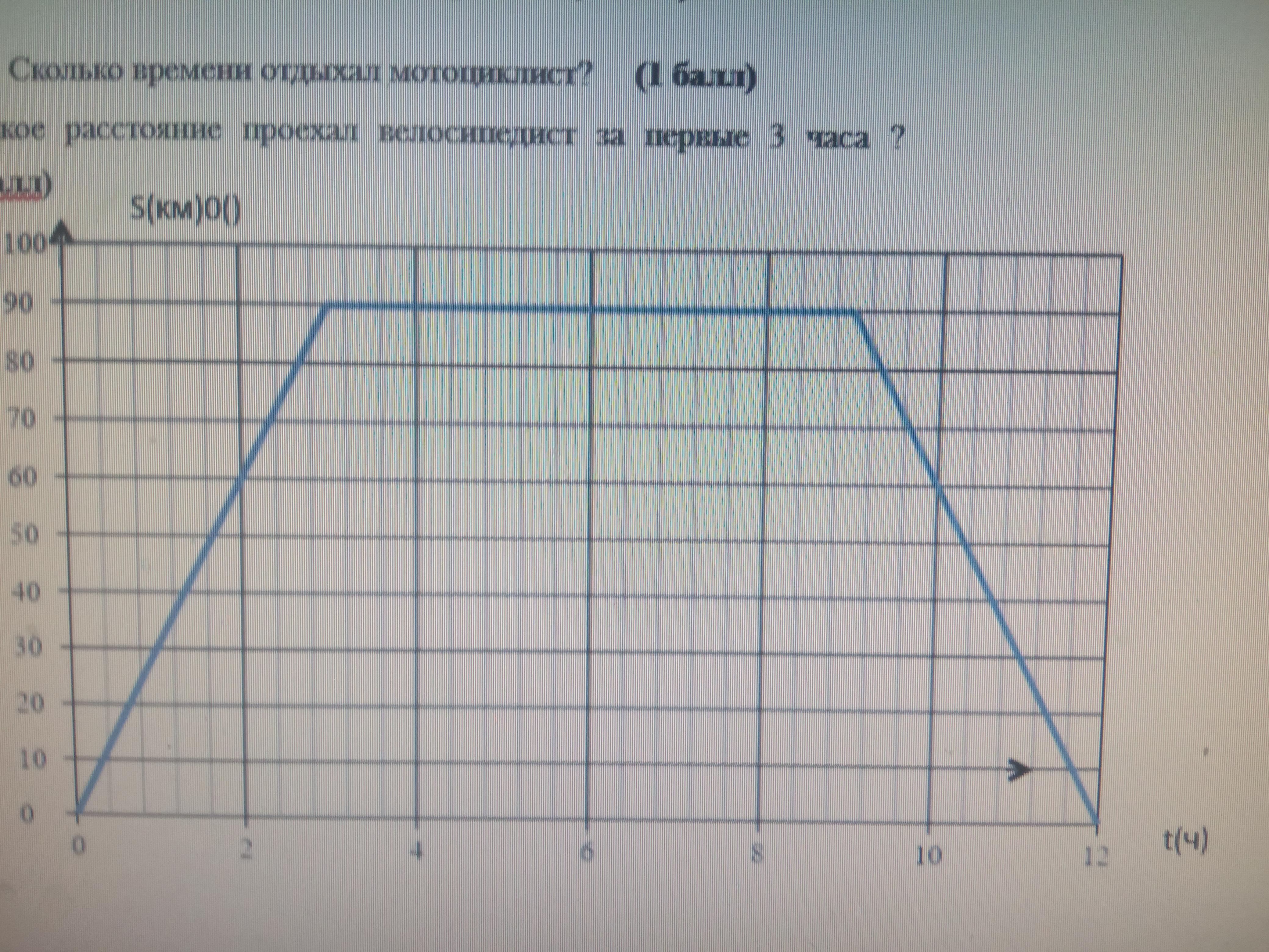 Сколько времени отдыхал мотоциклист? (1 балл)