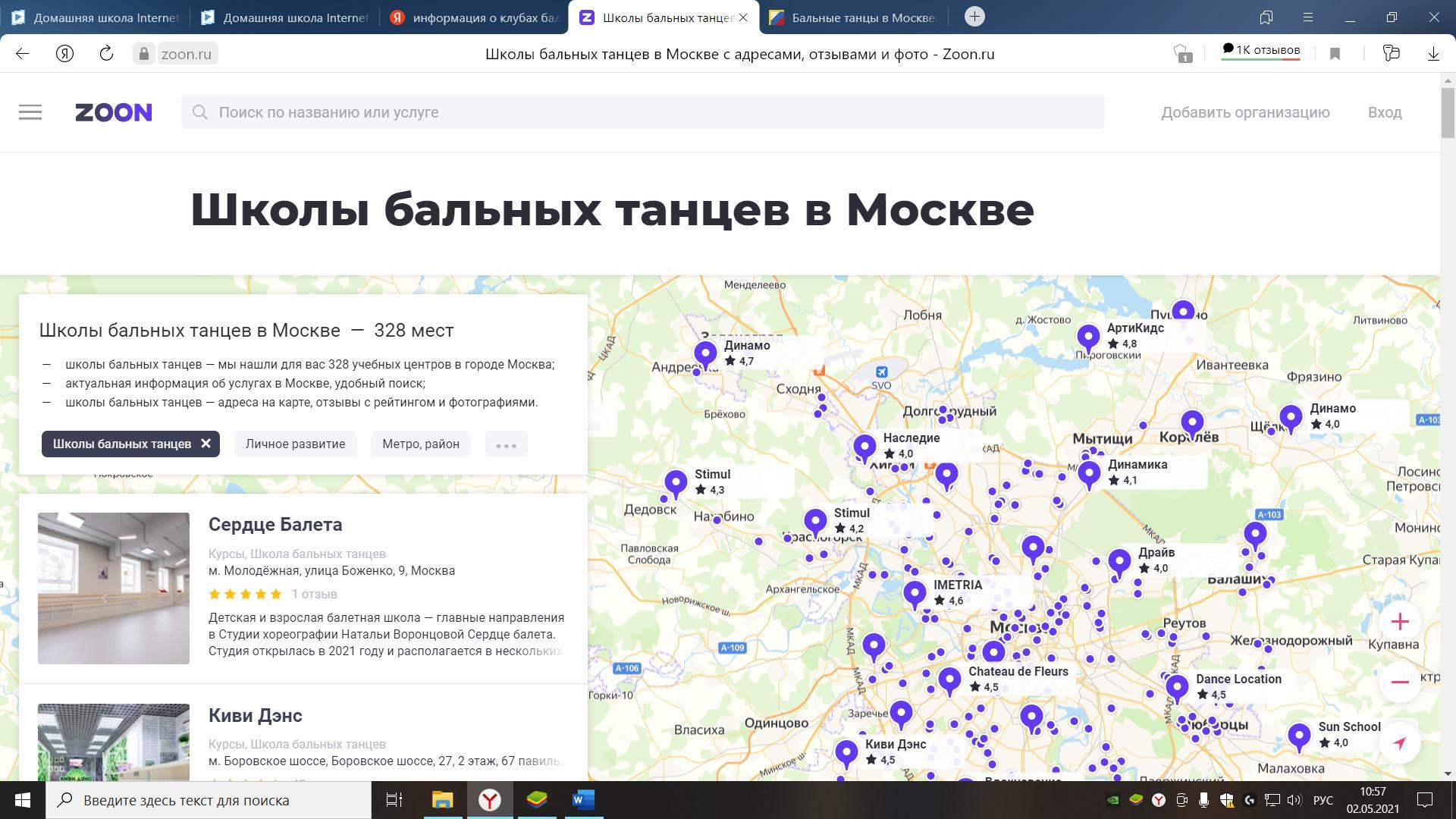 Найти информацию о клубах бальных танцев Москвы или Санкт-Петербурга.