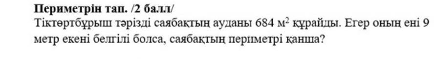 684:9=76м вторая сторона