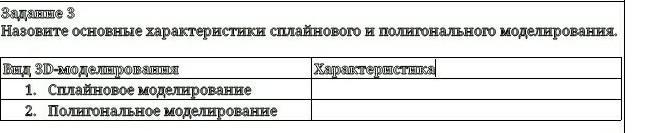 1. создание 3d объектов при помощи кривых линий (окружности, прямоугольники, дуги и т.д Аналог двухмерной графики - вектор)
