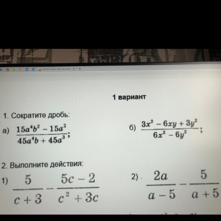 1 . а ) . . . = [ 15a²( a²b² - 1 ) ]/[ 45a³( ab + 1 ) ] = ( ab - 1 )/3a ;