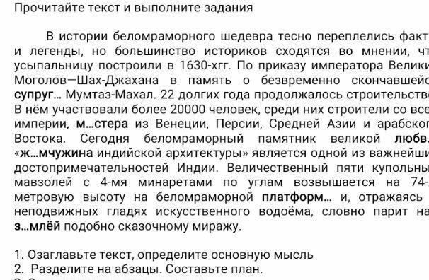 Абзацы: Первый заканчивается после "Мумтаз-Махал". Второй заканчивается после "арабского Востока". Третий идет до конца.