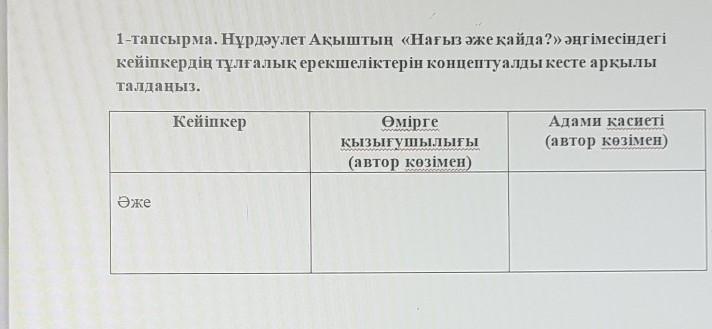 1-тапсырма. Нұрдәулет Ақыштың «Нағыз әже қайда?» әңгімесіндегі