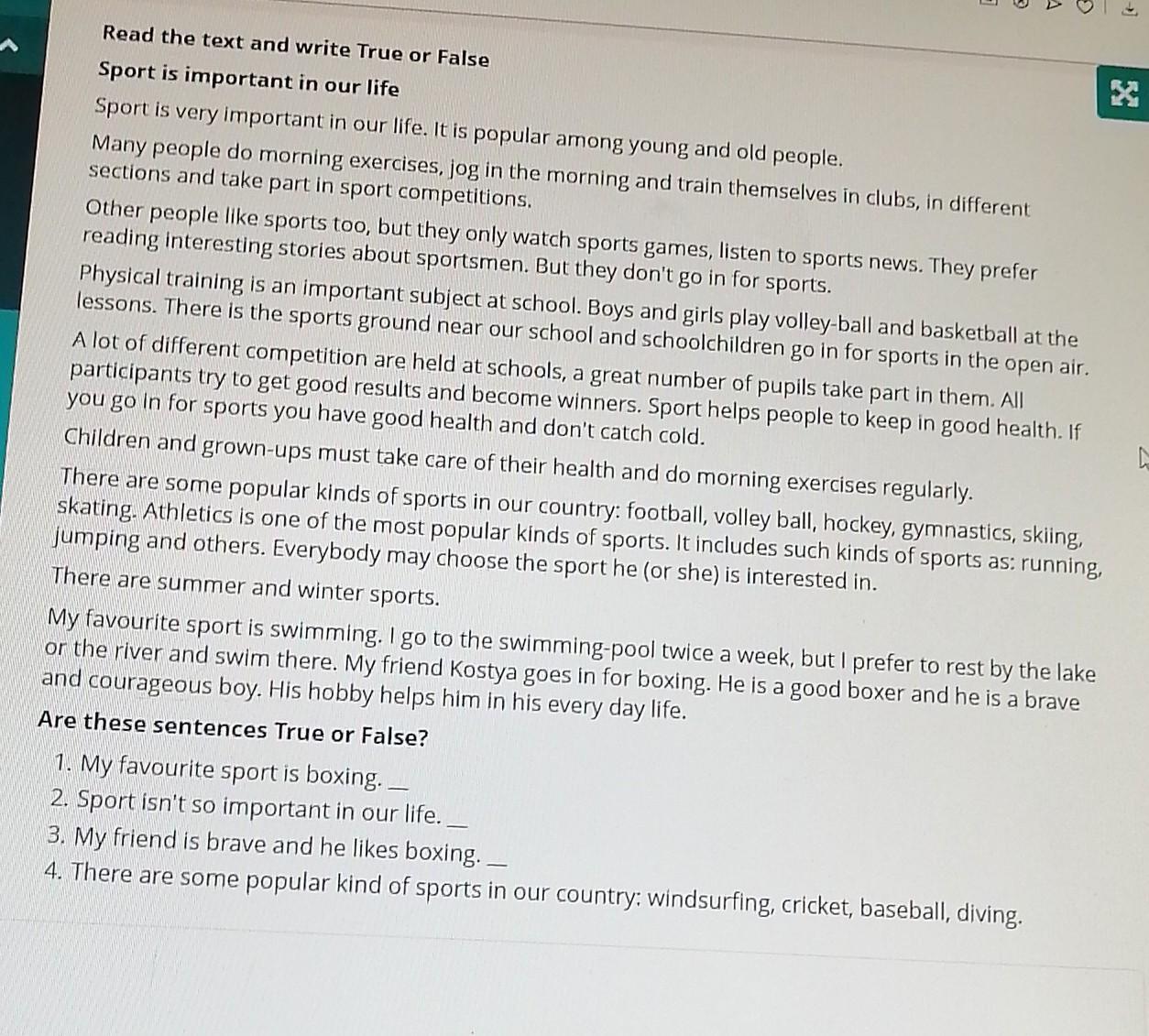 or the river and swim there. My friend Kostya goes in for boxing. He is a good bover and he is a brave