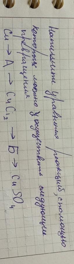 напишите уравнения реакций, с помощью которых можно осуществить следующие превращения: Cu→A→CuCi²→Б→CuSO⁴