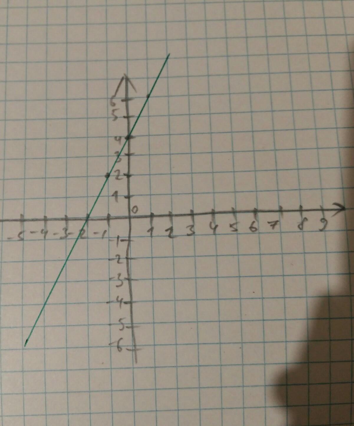 у = 2х +4, уравнение вида y=kx+b, график - прямая,
