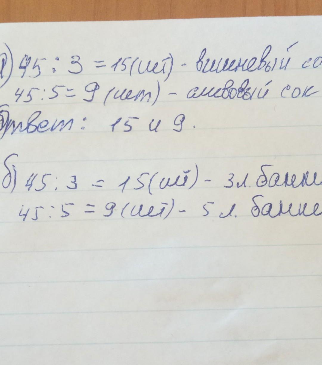 а) Хозяйка приготовила по 45 л вишневого и сливового комитета