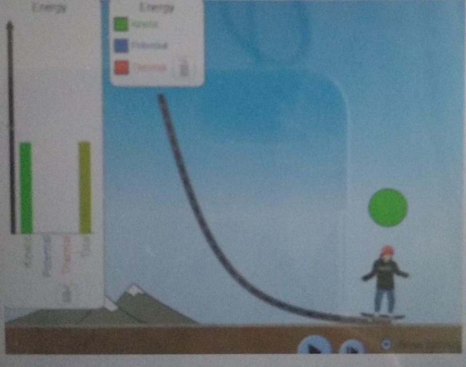 При скольжении с горки потенциальная энергия перешла в кинетическую. Если при скольжении по горке было трение, то часть кинетической энергии была израсходована на трение.
