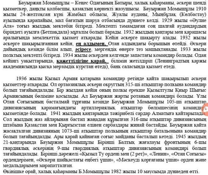 4. Мәтіндегі қарамен жазылып, асты сызылған сөздер оқшау сөздердің қайсысына жататындығын анықтаңыз.