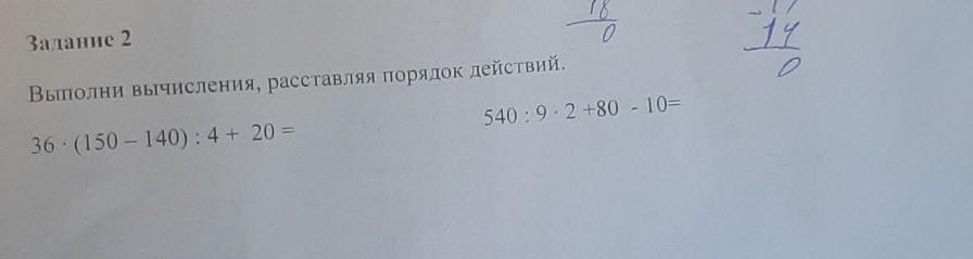 Забыл, в 1 будет первое действие - скобки , потом умножение, потом деление и прибавление. А во 2 - 1 деление, 2 - умножение, 3 - прибавление, 4 - минус