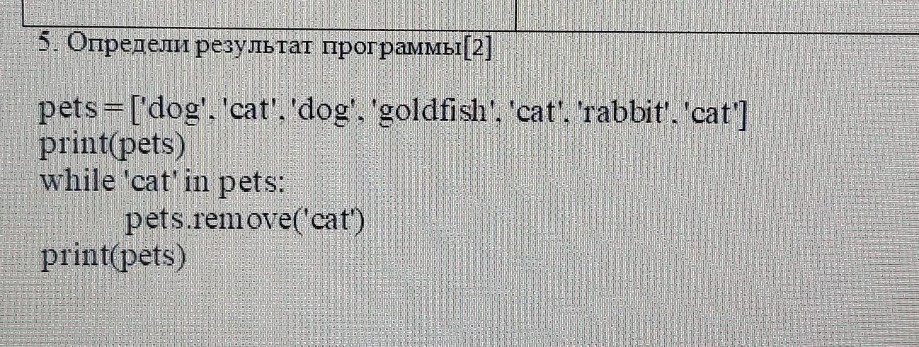 pets=['dog', 'cat', 'dog', 'goldfish', 'cat'. Tabbit', 'cat']