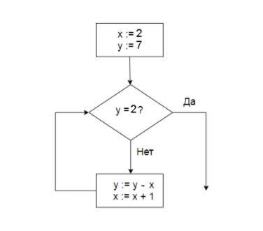 потом игрик будет равнятся 2 поэтому цикл заканчивается и икс будет равен 4