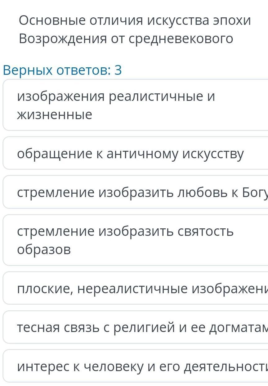 Основные отличия искусства эпохи Возрождения от средневекового: