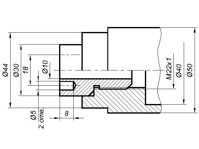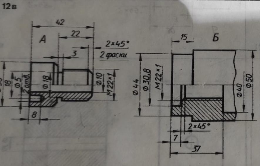 Черчение. Начертить деталь А ввёрнутую в деталь Б. С размерами