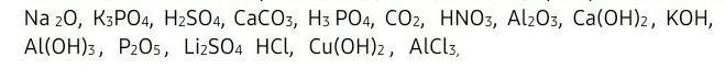 1. Разделите следующие соединения на оксиды, основания, кислоты, соли: Na20, K3PO4, H2SO4, CaCO3, H3 PO4, CO2, HNO3, Al2O3, Ca (OH) 2, KOH, Al (OH) 3, P2O5, Li2SO4. HCl, Cu (OH) 2, AlCl3,