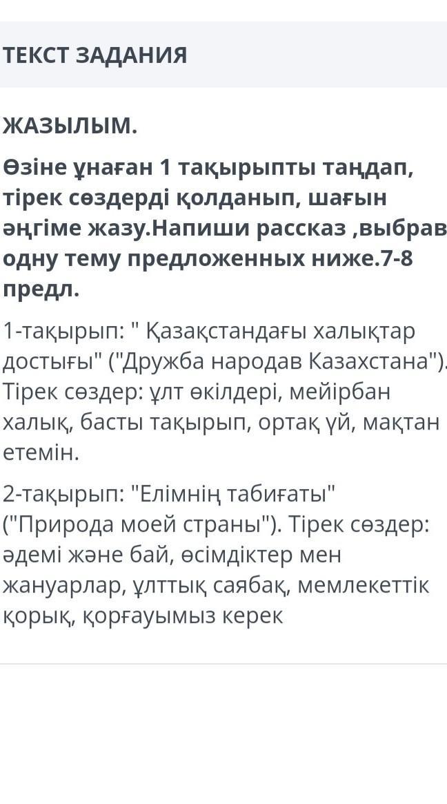 Біздің елде 132 өзге ұлт өкілдері бар.Мысалы:орыс,түрік,қырғыз,өзбек және тағыда басқа.Біздің мемклекетте басқа ұлт өкілдері бар болсада,біз бірімізге көмектесіп,бір бірімкзді силаймыз,бір бірімңзге құрмет көрсетеміз.