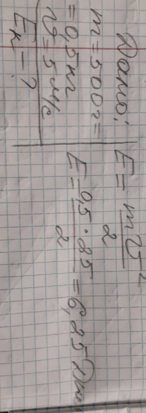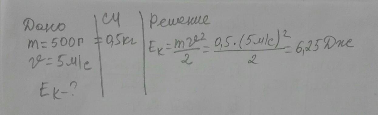 Вычислить кинетическую энергию мяча 500 г, летящий со скоростью 5 м / с.