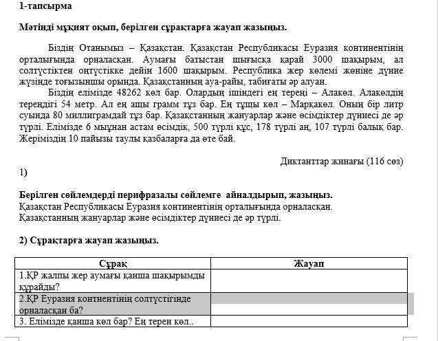 1.ҚР жалпы жер аумағы қанша шақырымды құрайды?