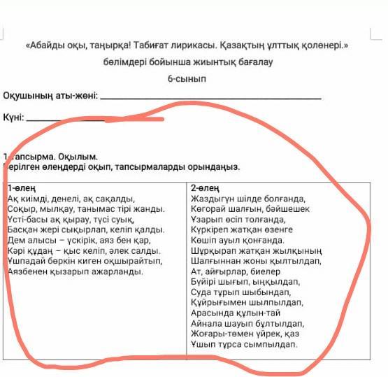 Берілген өлеңдерді оқыдық, тапсырма жоқ?