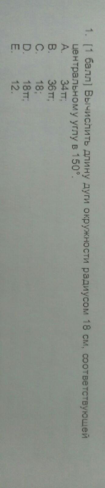 Если я смог правильно увидеть значения угла 150, а радиус равен 18, то в перечне нет правильного ответа. Правильный ответ 15 рi