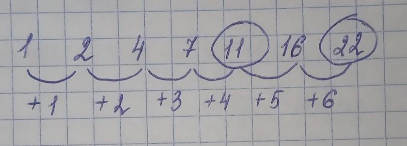 1 2 4 7 11 16 22