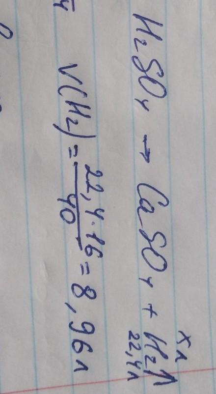 Визначити об'єм газу який виділиться від взаемодії кальцію масою 0,39г з сульфатною кислотою.